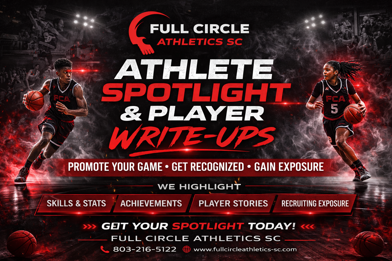 Full Circle Athletics SC promotes teams through professional team Spotlight features and Player Write-Ups that highlight their skills, achievements, and journey. Our goal is to give athletes the exposure they deserve while helping them build a strong presence in the sports community.